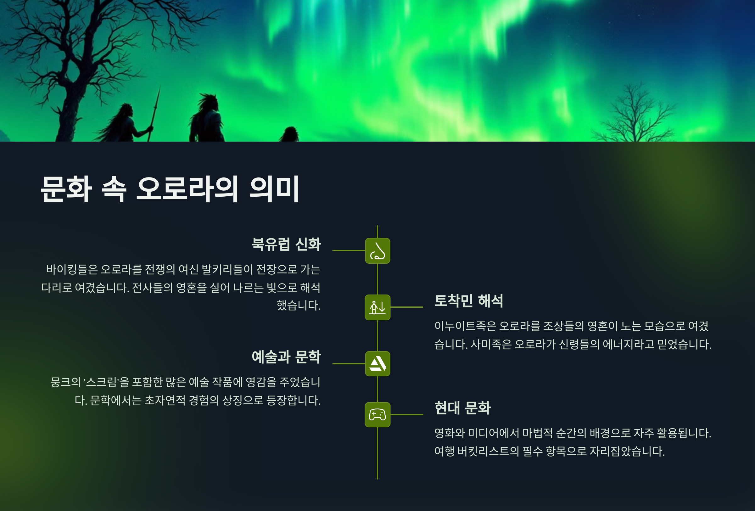 지금도 오로라를 '운명의 빛', '소원 성취의 신호'라며 특별한 에너지를 가진 존재로 믿는 사람들도 많아요!