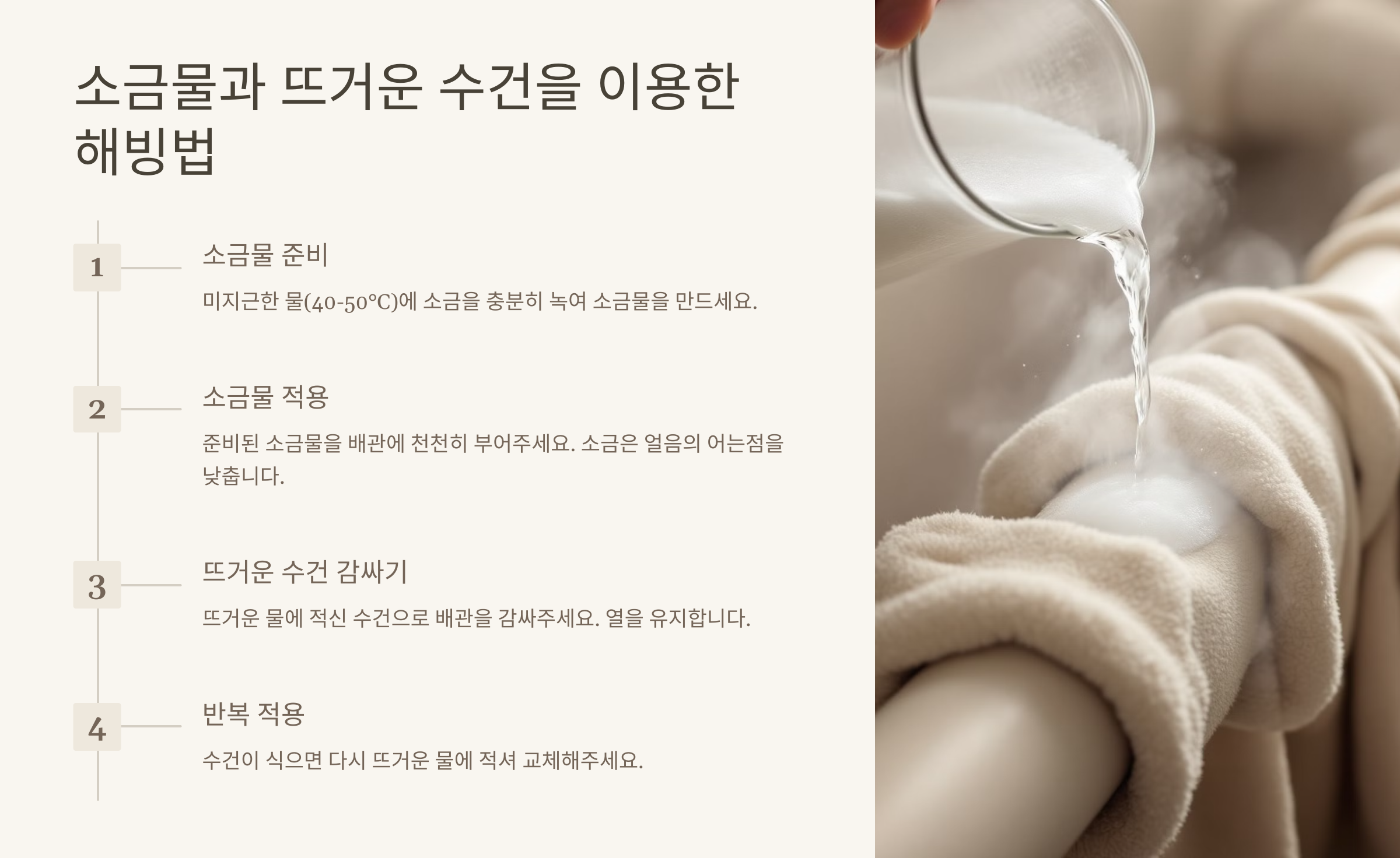 4. 🧂 소금물과 뜨거운 수건을 이용한 해빙법