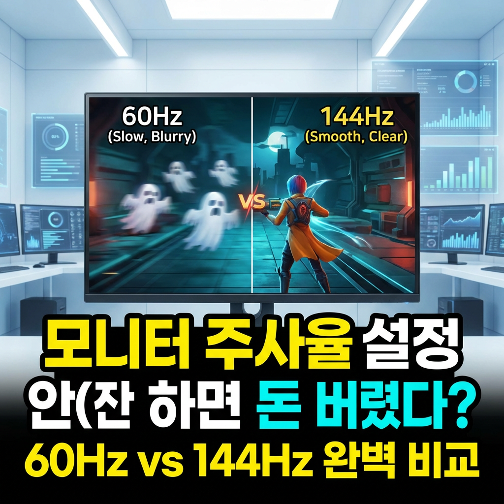 이게 왜 문제냐면요, 20만 원 넘게 주고 산 144Hz 모니터의 성능을 절반도 못 쓰는 거예요. 마치 스포츠카 사놓고 2단 기어로만 달리는 것과 똑같습니다. 게임할 때 끊김 현상이 있거나, 마우스 움직임이 부자연스럽다면 십중팔구 주사율 설정이 안 되어 있는 겁니다.