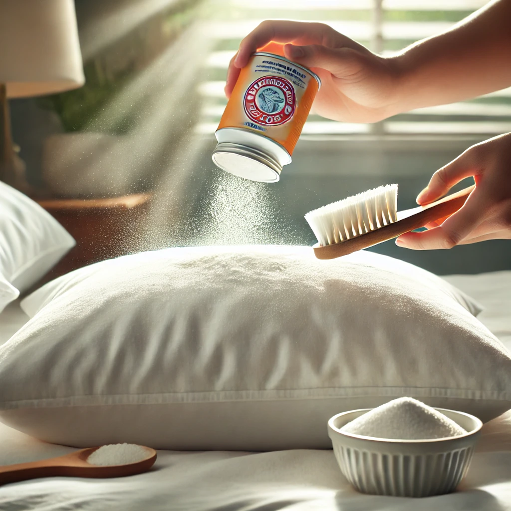 베이킹소다는 가장 간편한 천연 탈취제예요. 베이킹소다를 베개 위에 골고루 뿌린 후 30분 정도 그대로 두었다가 청소기로 빨아들이면 땀 냄새와 불쾌한 향을 효과적으로 제거할 수 있어요.