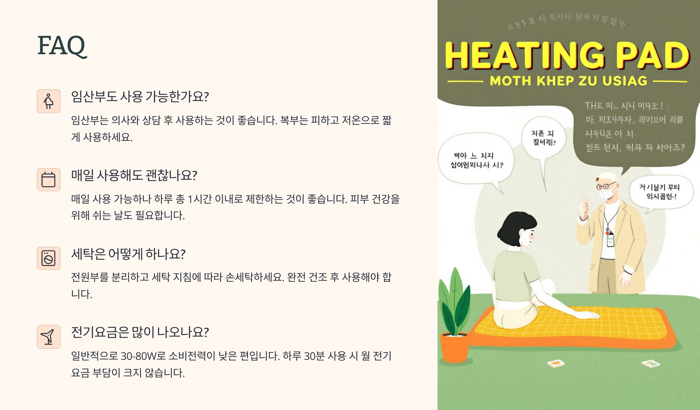 전기찜질기를 아무리 좋아해도 올바르게 사용하지 않으면 부작용이 생길 수 있어요. 가장 먼저 확인할 건 '화상 위험'이에요. 특히 고온으로 오랜 시간 사용하거나, 수면 중 사용하는 건 위험하니 피해야 해요.