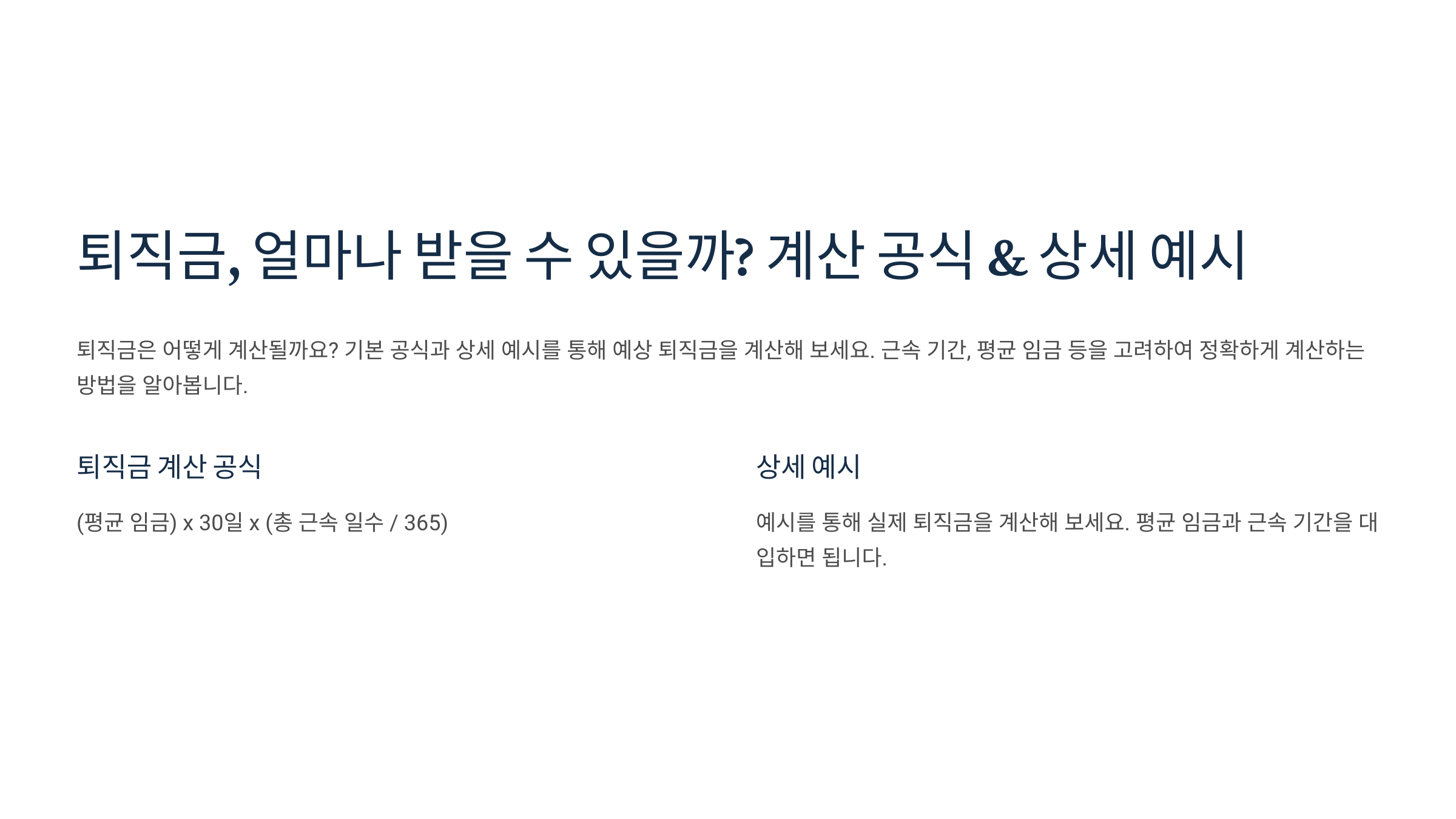퇴직금 계산 공식과 상세 예시