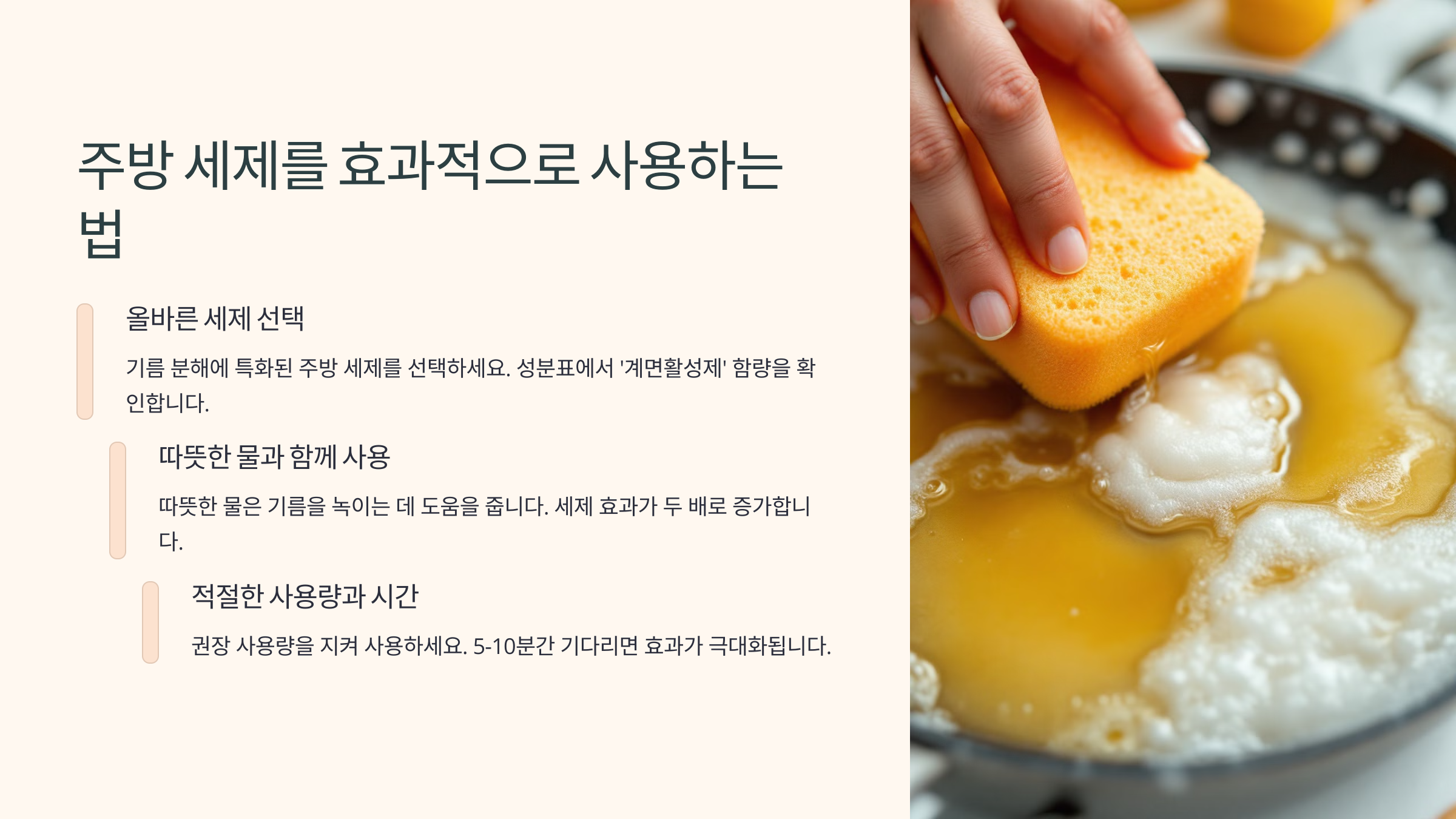 주방 세제는 가장 기본적인 기름때 제거 도구예요. 하지만 제대로 사용하는 방법을 알면 더욱 효율적으로 청소할 수 있답니다! 🧼