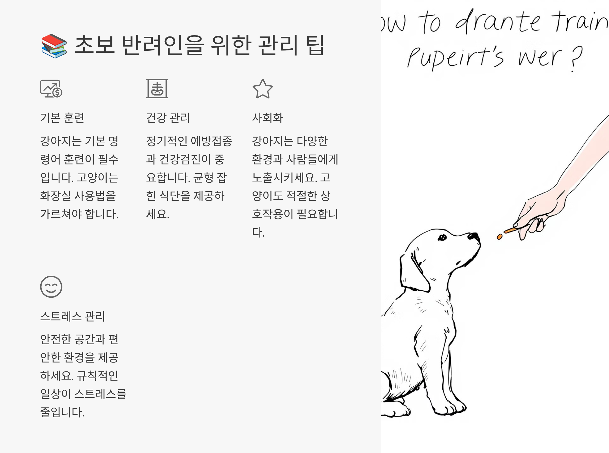 📢 이제 초보 반려인을 위한 훈련 & 관리 팁을 알아볼까요? 📚