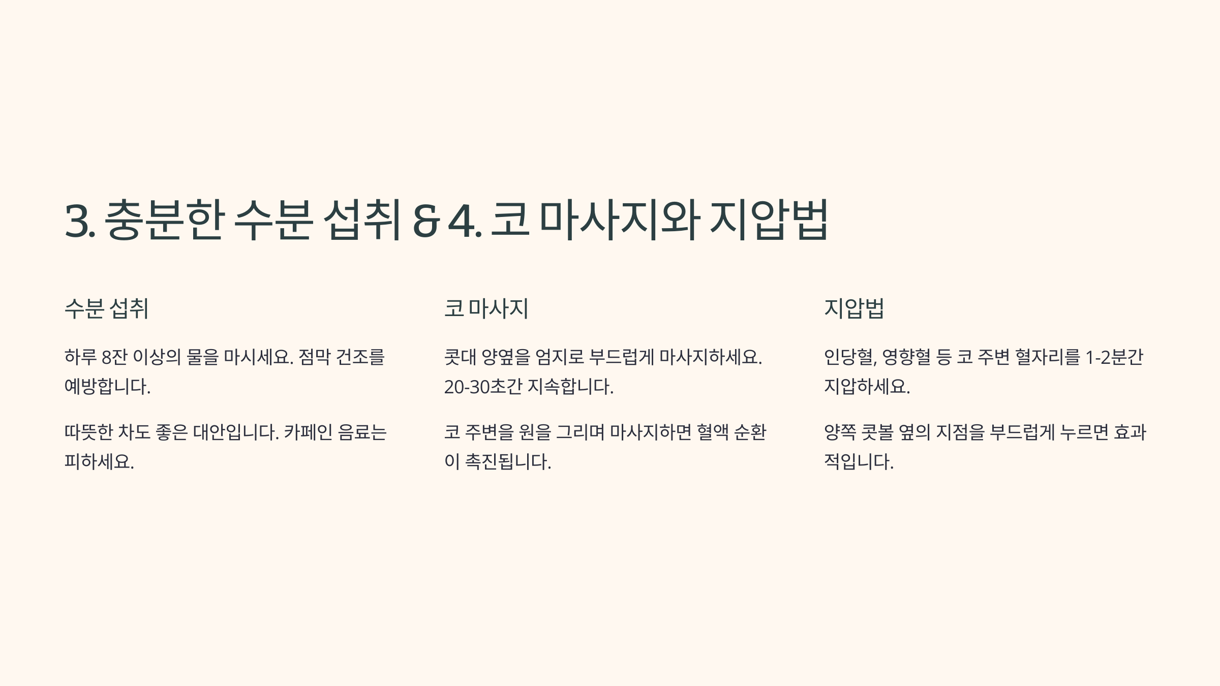 | 수분 섭취 방법 | 코막힘 완화 효과 | 추가 효과 |