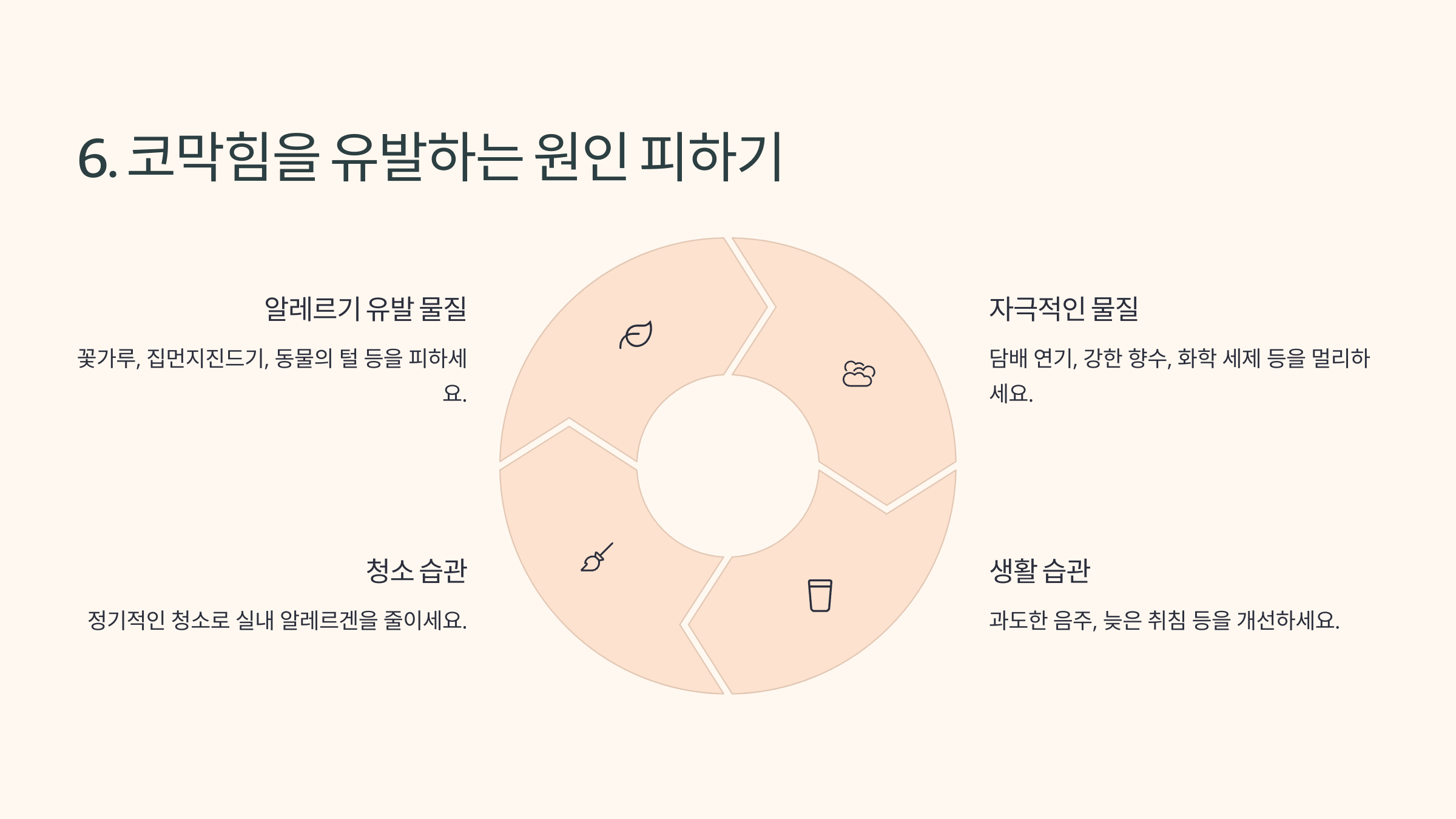 6. 🚫 코막힘을 유발하는 원인 피하기