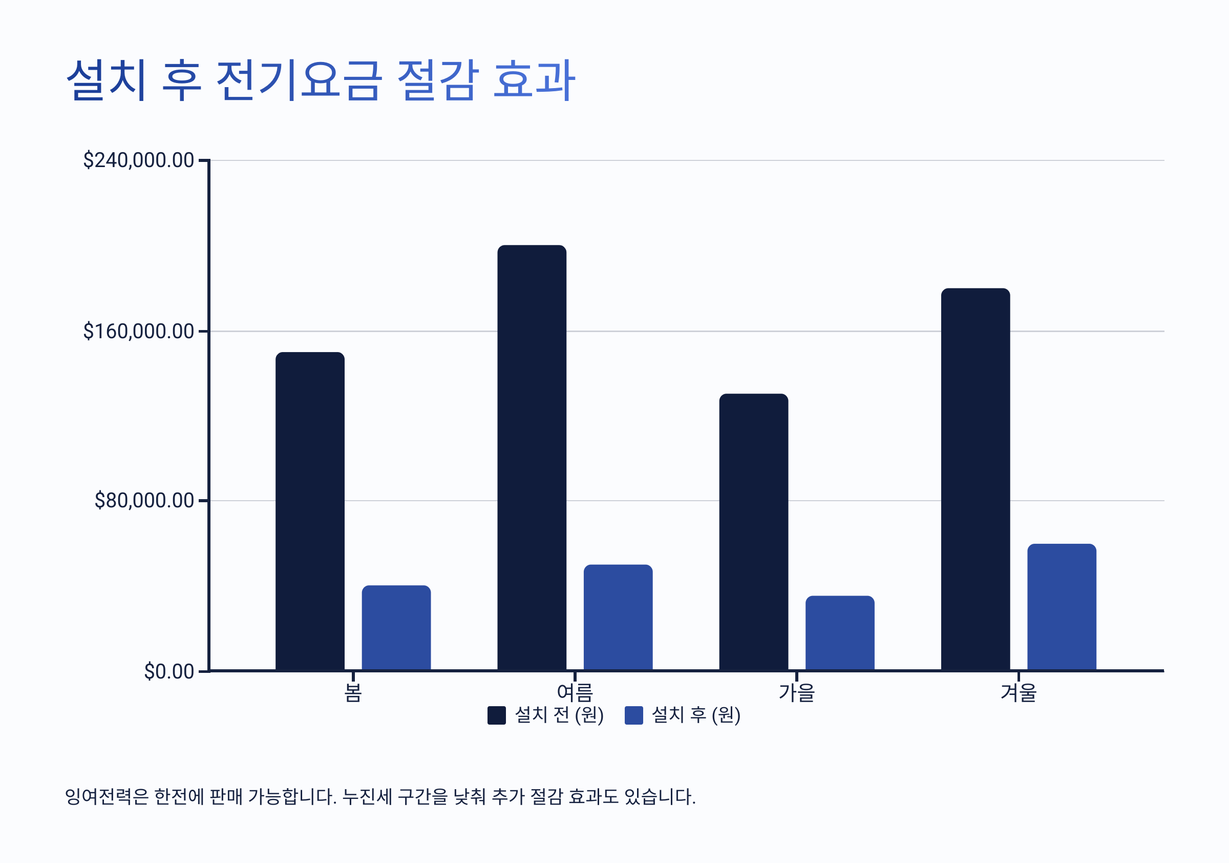 - ⚡ 한전과 연계해 잉여 전력을 판매하면 추가 수익도 가능합니다.