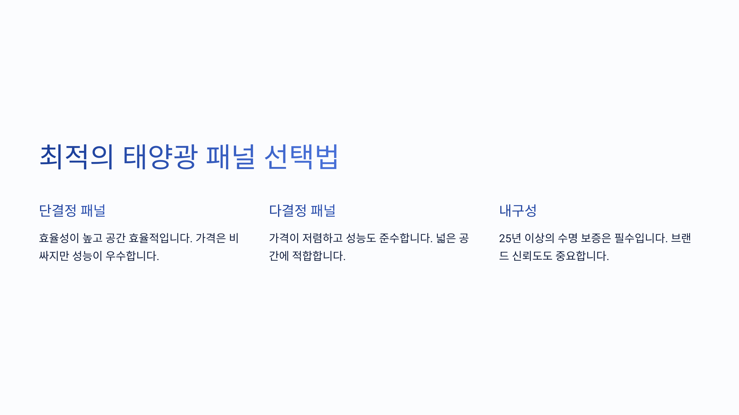 📢 이제 최적의 태양광 패널을 선택하는 방법을 알아볼까요?