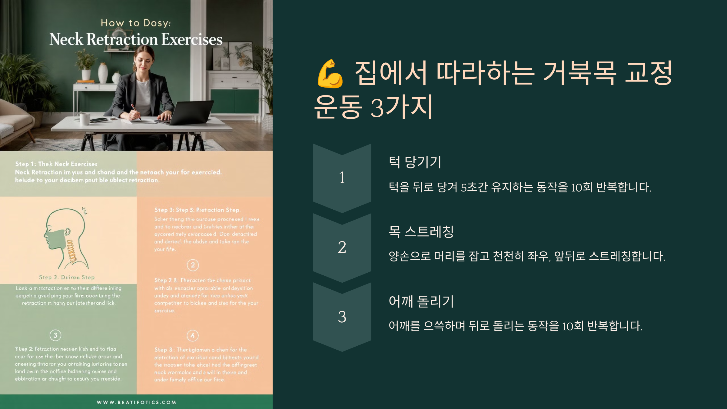 - 💪 거북목 교정 운동 – 하루 5분 투자로 목 건강 지키기