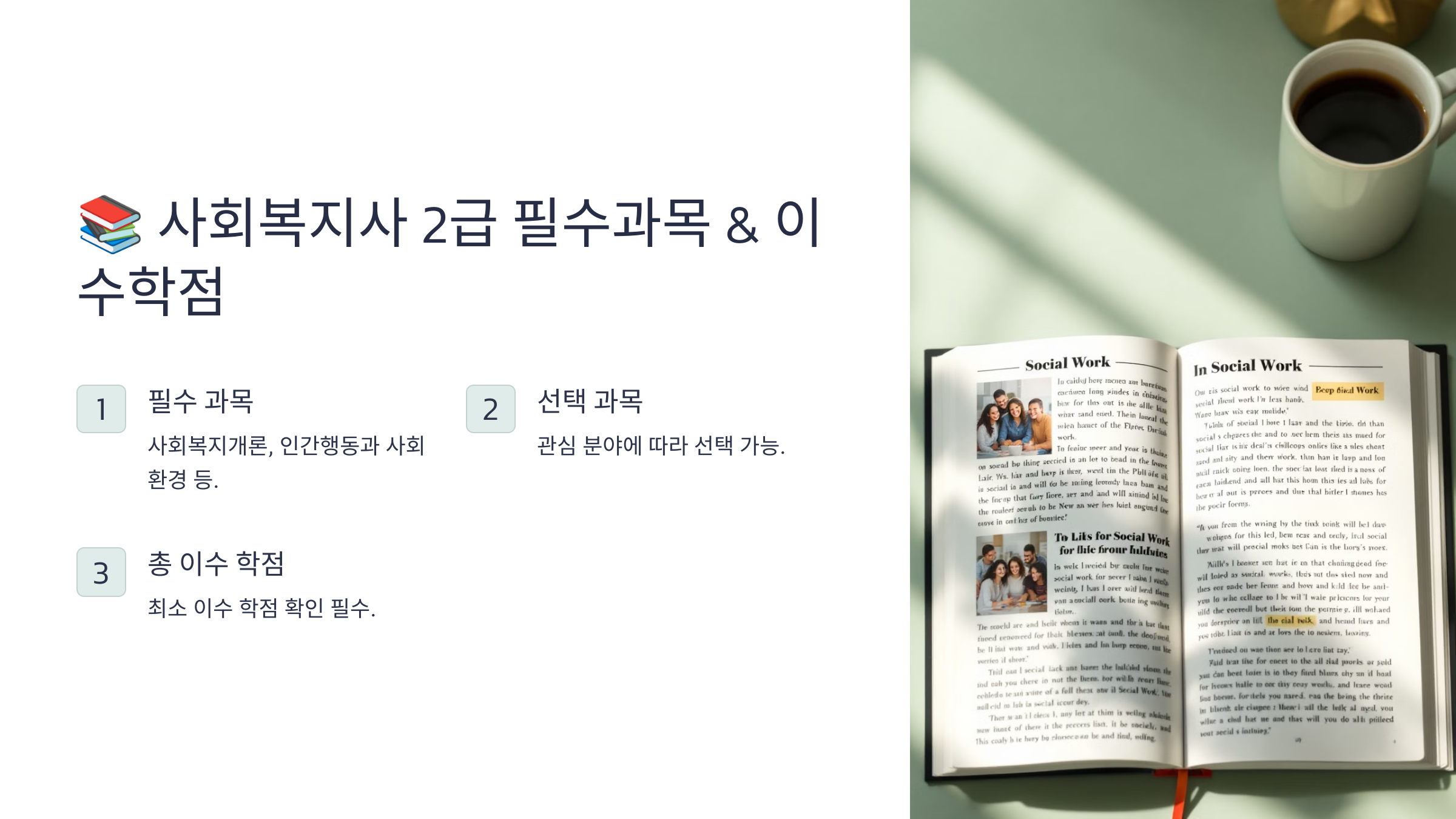 ✅ 사회복지사 2급, 시험 없이 취득 가능? ✅ 필수과목은 몇 과목? 실습은 얼마나 해야 할까? ✅ 취득 후 어떤 직업이 가능할까?