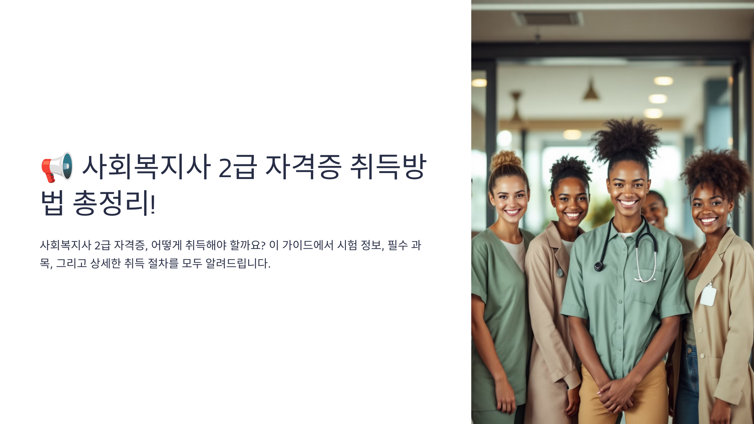 💡 "사회복지사 2급 자격증이 무엇인가요?" 사회복지사 2급은 사회복지 분야에서 필수적인 국가자격증으로, 사회복지 관련 기관, 요양시설, 복지센터 등에서 전문 인력으로 활동할 수 있는 자격을 의미해요. ✅