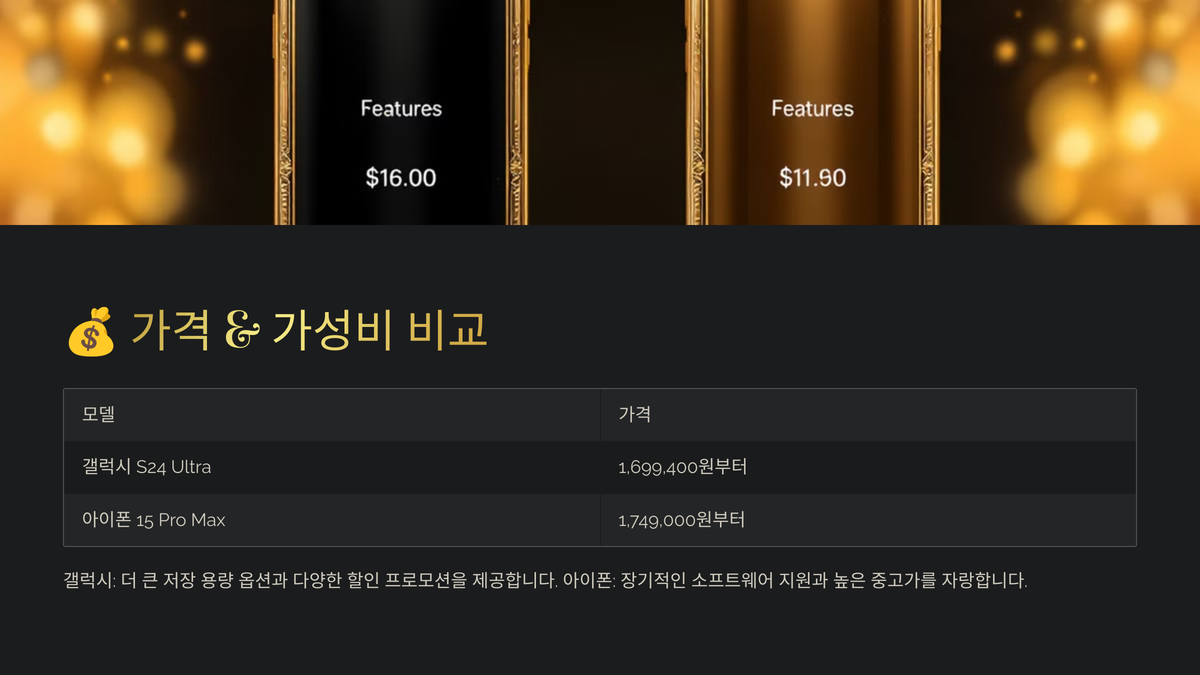 - 📌 아이폰 15 프로 맥스 – 가격이 높지만, iOS 생태계 & 프리미엄 이미지