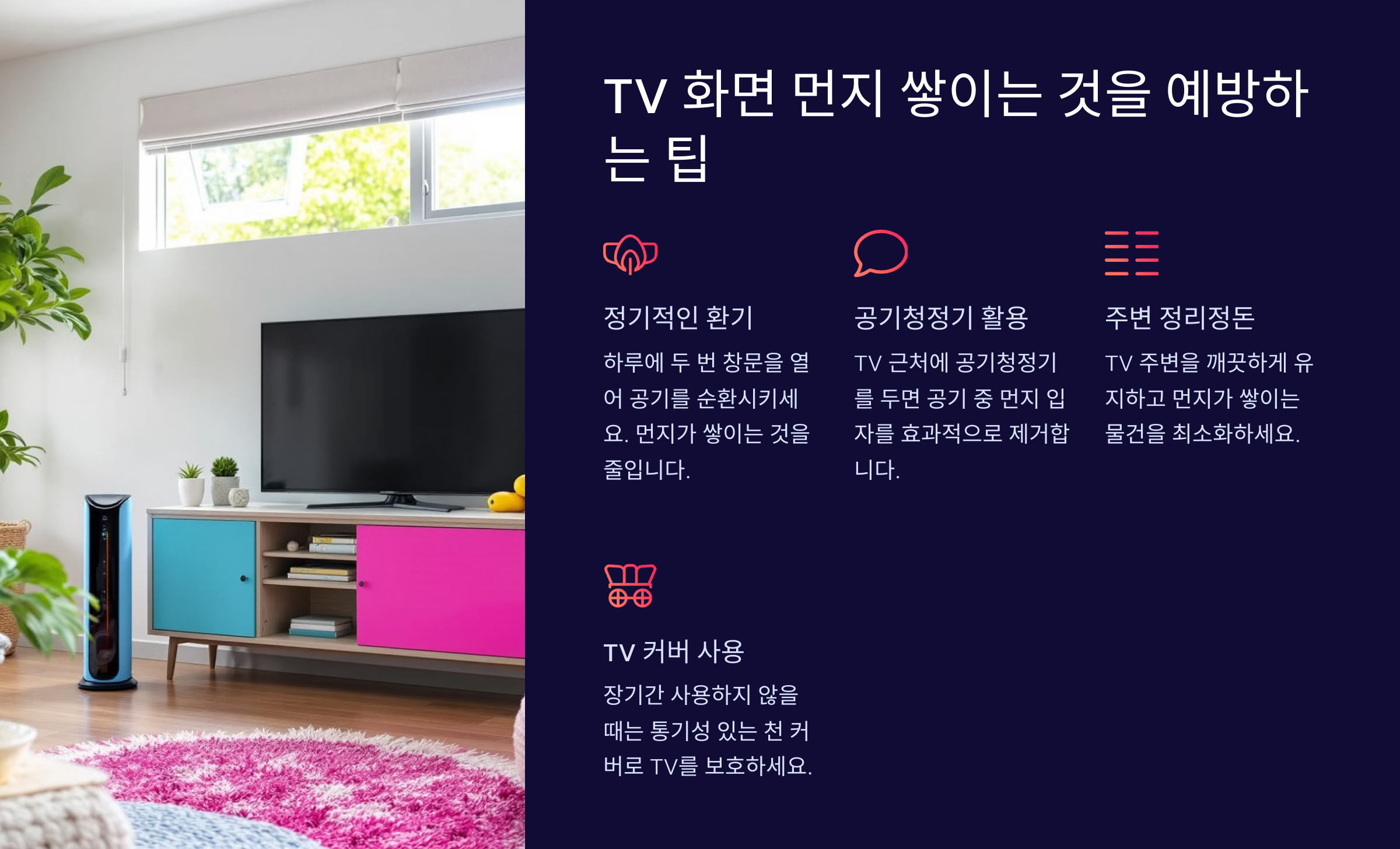 6. 🏡 TV 화면 먼지가 쌓이는 것을 예방하는 팁