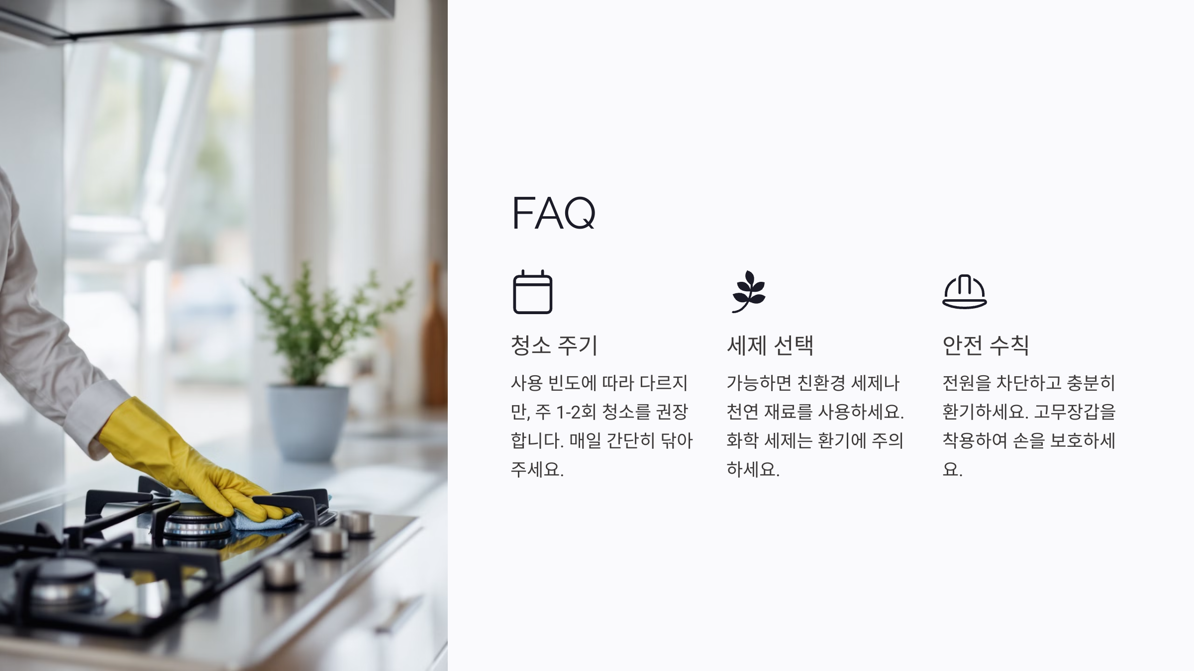 기름때를 미리 예방하면 가스레인지를 더 깨끗하게 유지할 수 있어요! 이제 마지막으로 자주 묻는 질문(FAQ) 섹션을 확인해볼까요? 😊