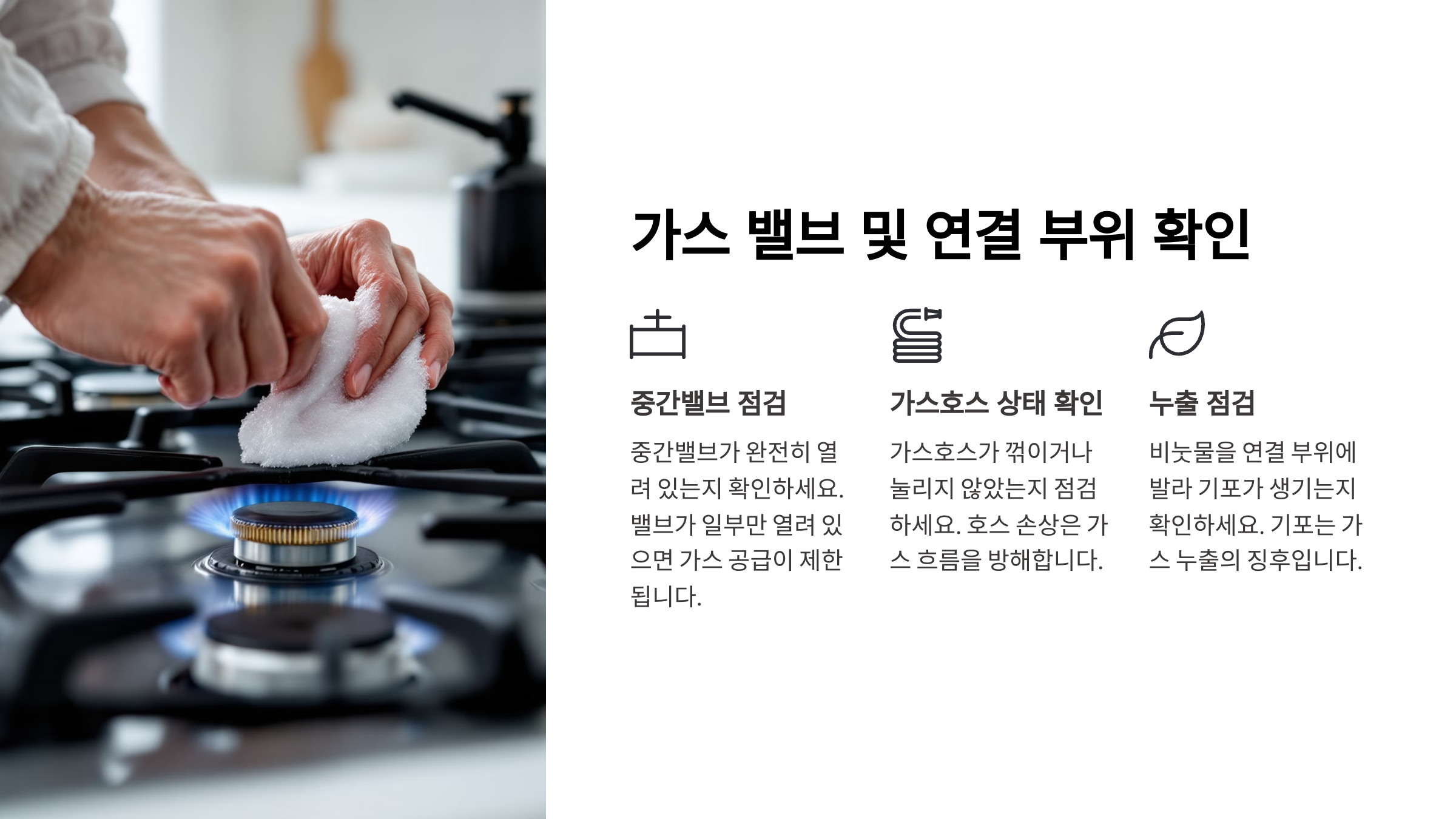 🔄 가스 밸브 및 연결 부위 확인