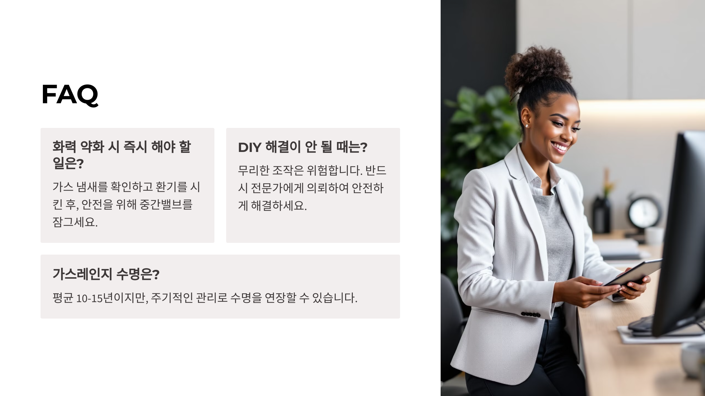 내가 생각했을 때, 가스 관련 문제는 안전이 최우선이에요. 😌 직접 해결하기 어렵거나 위험이 느껴진다면 꼭 전문가에게 점검을 요청하세요!