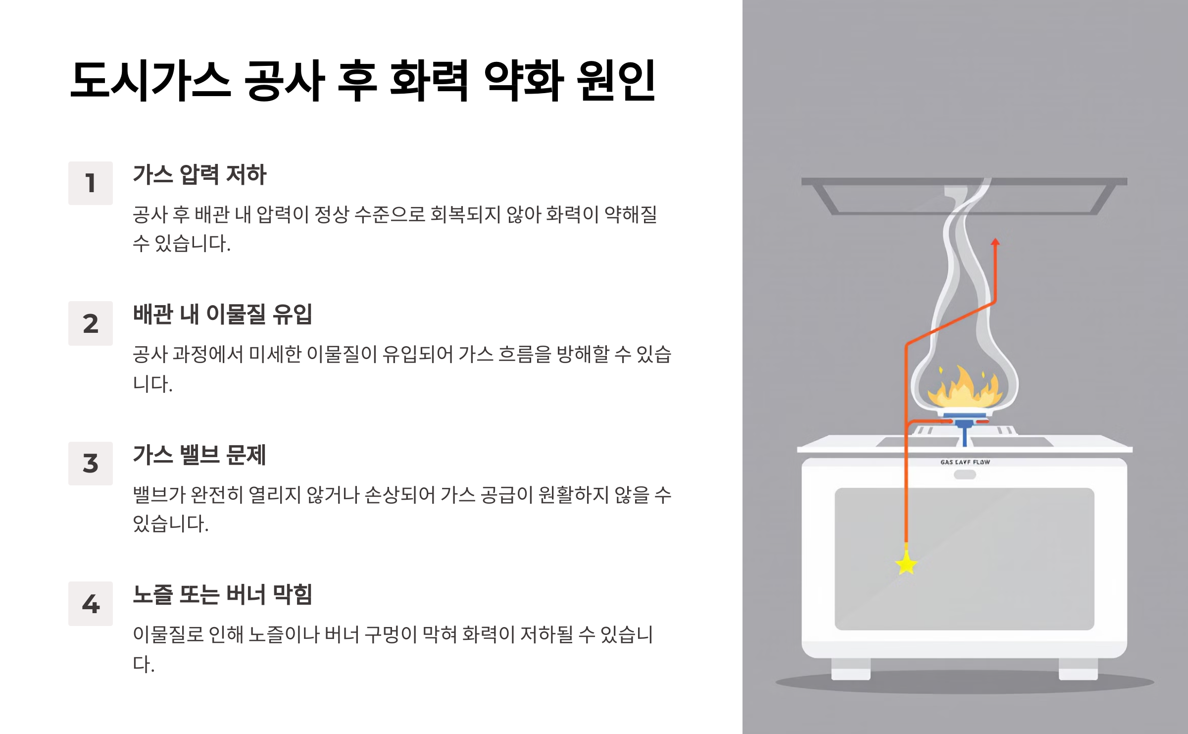 🔎 도시가스 공사 후 화력 약화 원인