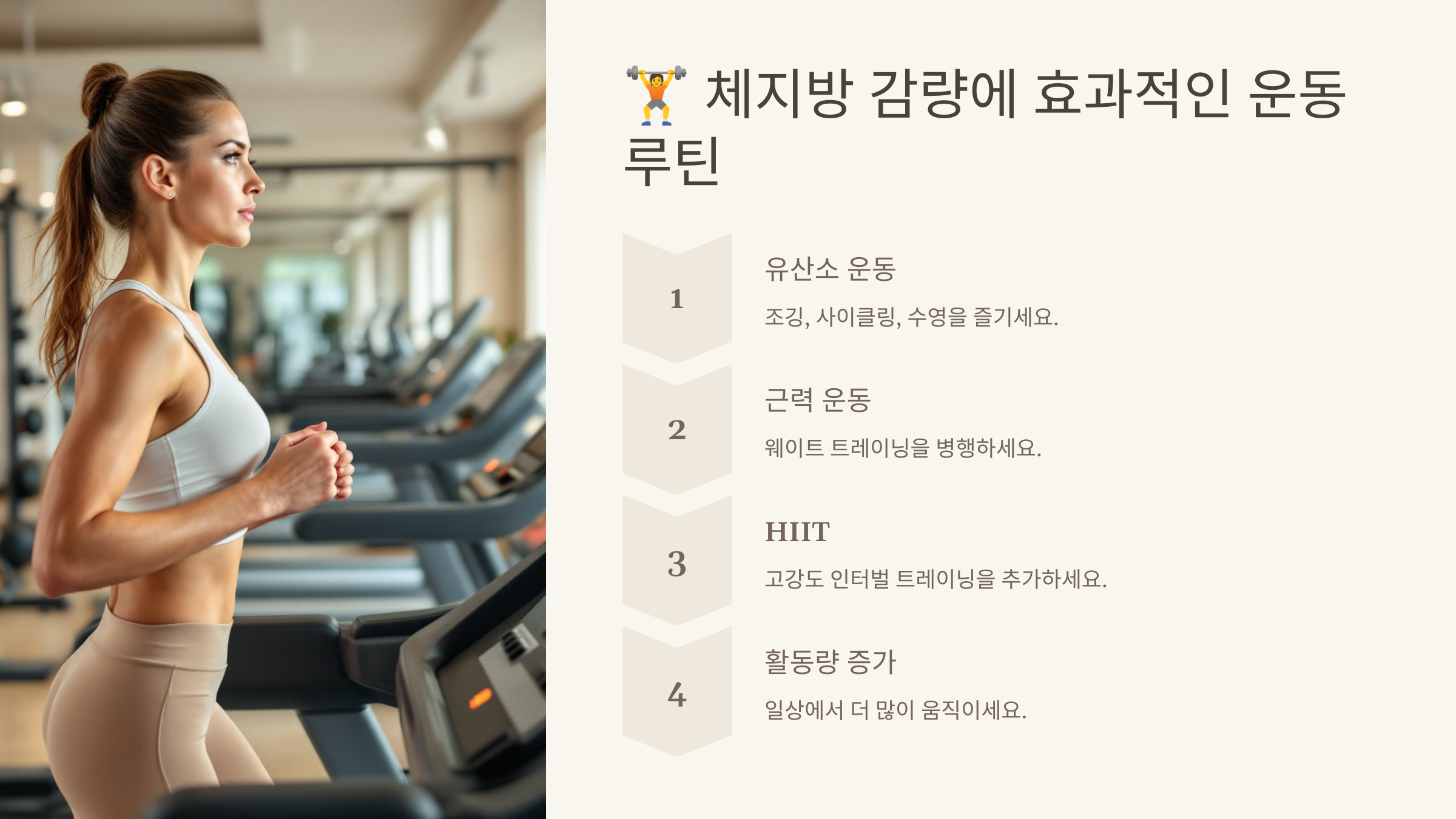 ✅ 지방을 태우는 음식들을 잘 활용했다면, 이제 효과적인 운동 루틴을 알아볼까요? 🏋️