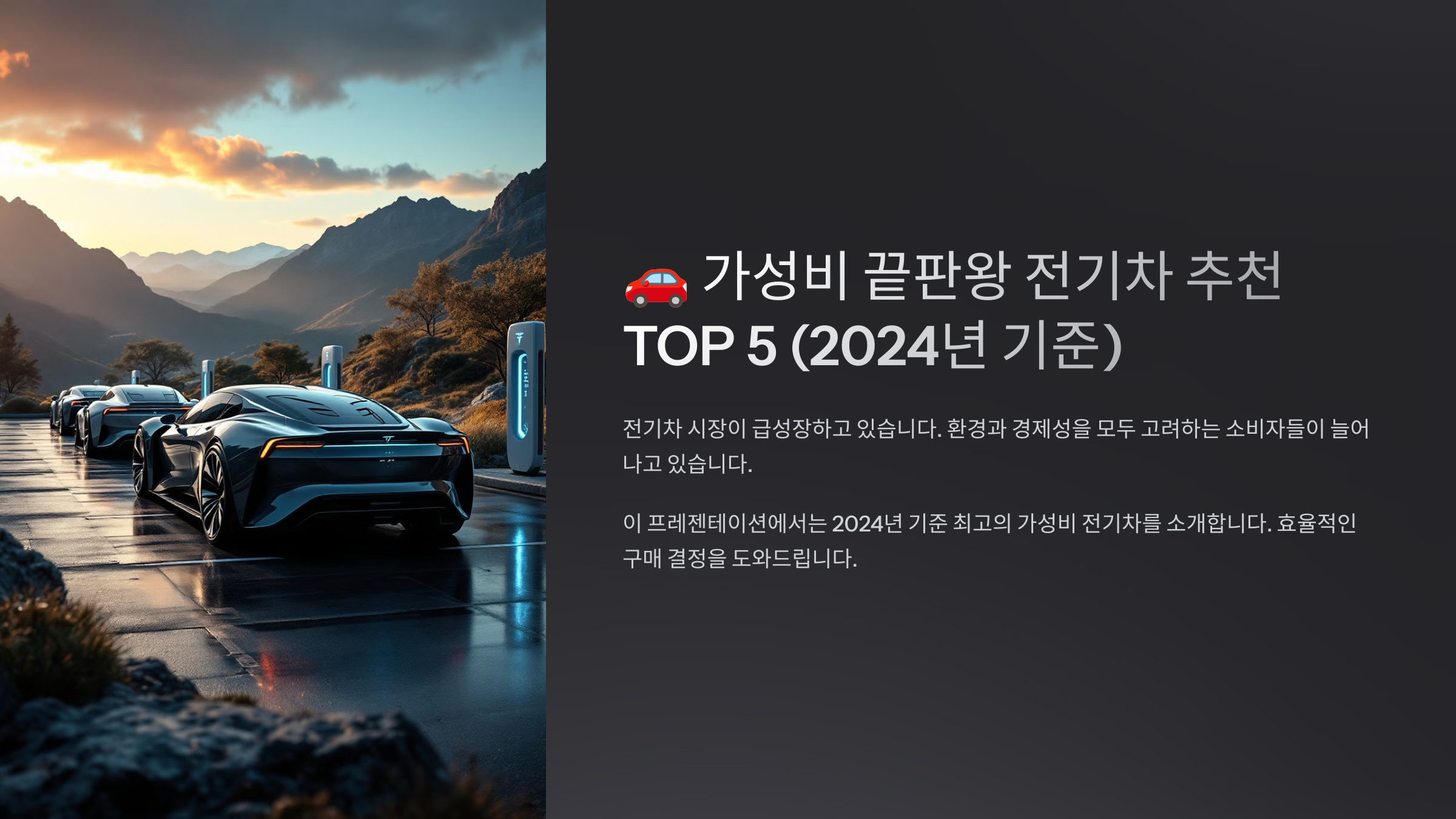🚀 지금부터 2024년 기준 가성비 끝판왕 전기차 TOP 5를 소개합니다!