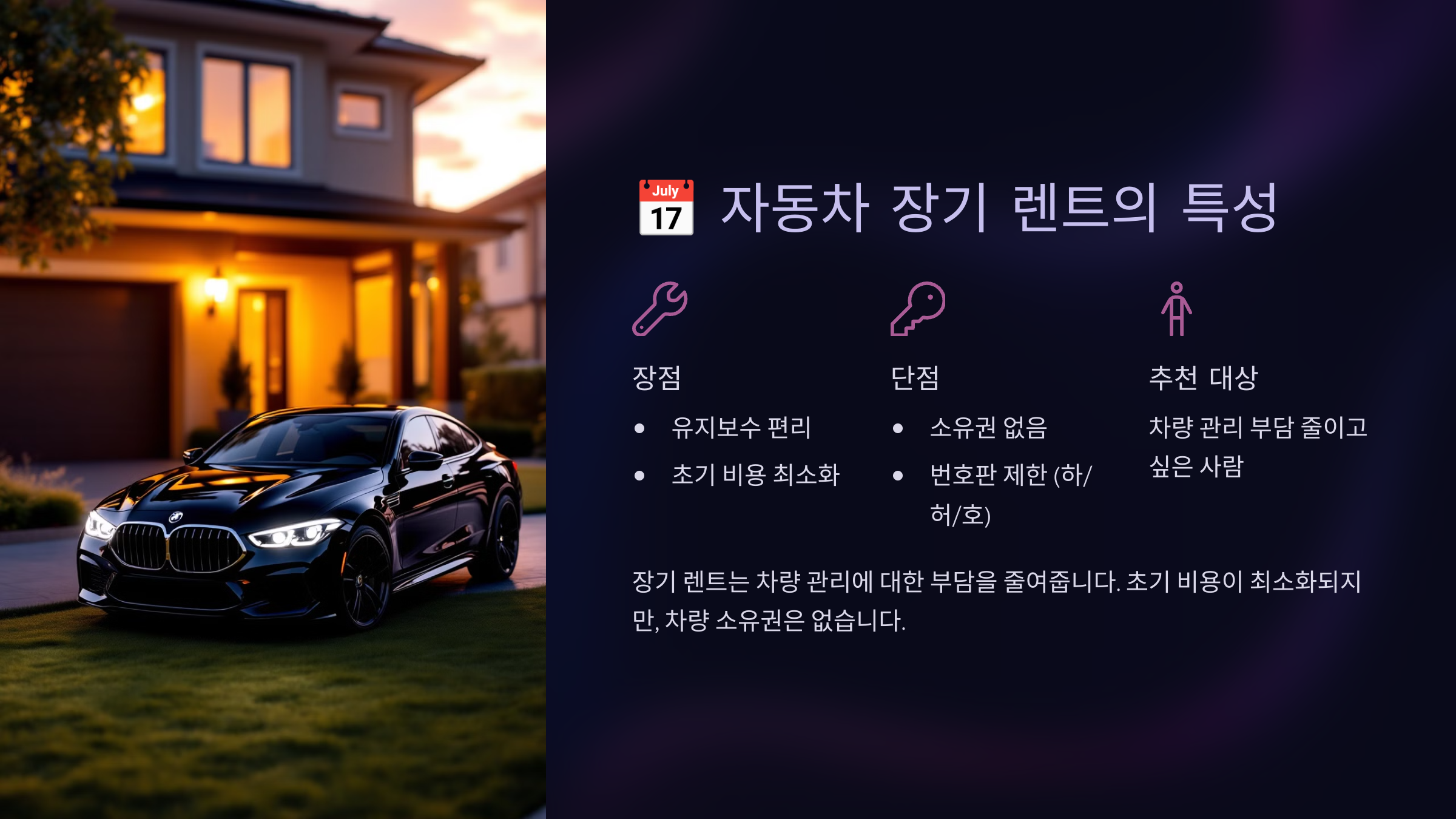 📅 자동차 장기 렌트, 장단점 & 추천 대상