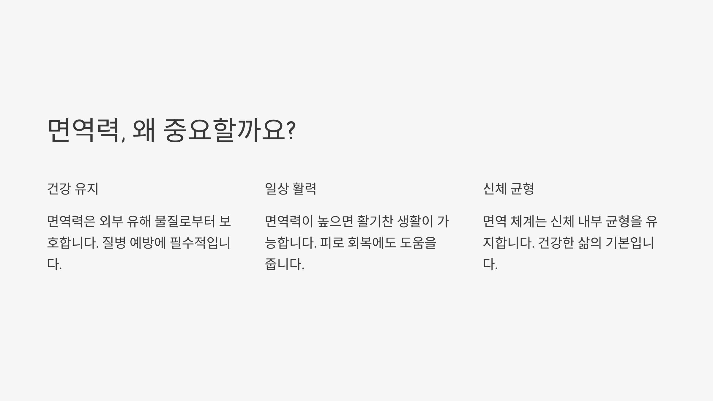 | 면역력 약할 때 🥱 | 면역력 강할 때 💪 |