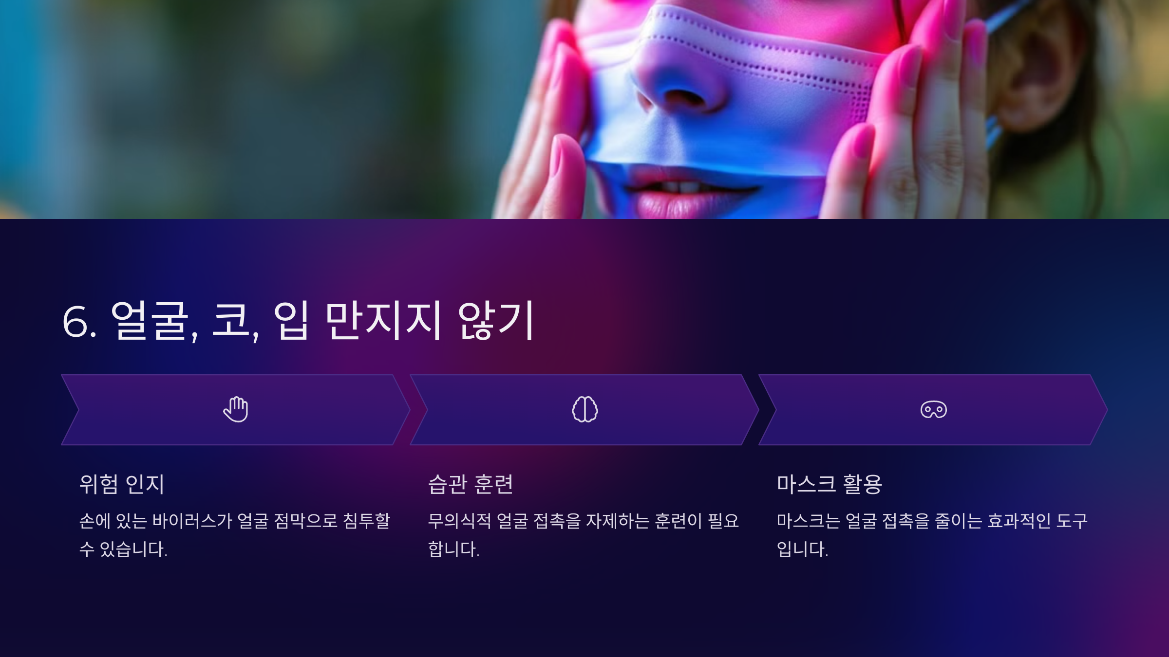 6. 🚫 얼굴, 코, 입 만지지 않기