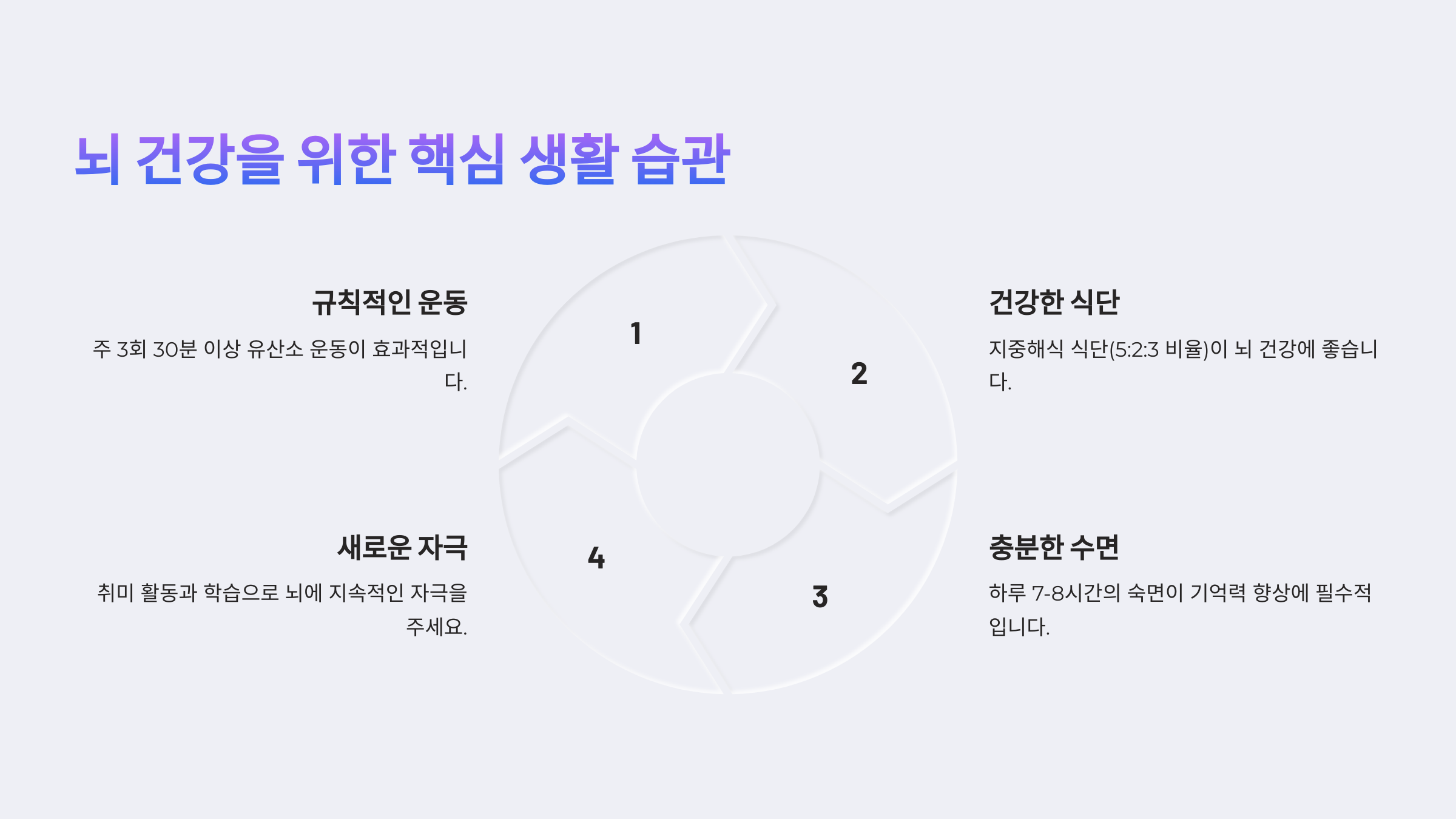 뇌도 근육처럼 단련할 수 있어요. 꾸준한 운동은 기억력 개선에 필수적이죠!