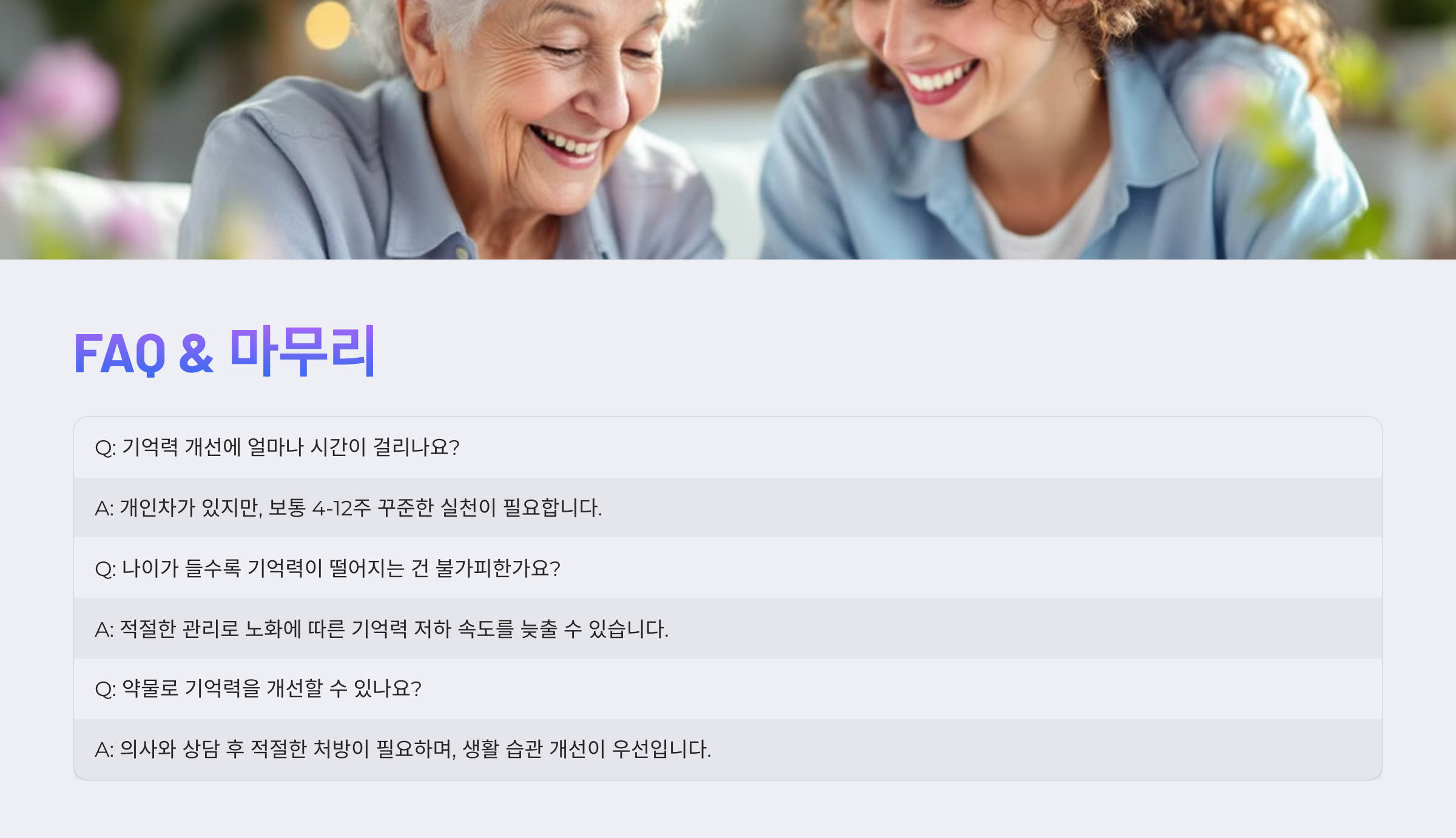 Q1. 기억력을 단기간에 향상시킬 수 있나요?