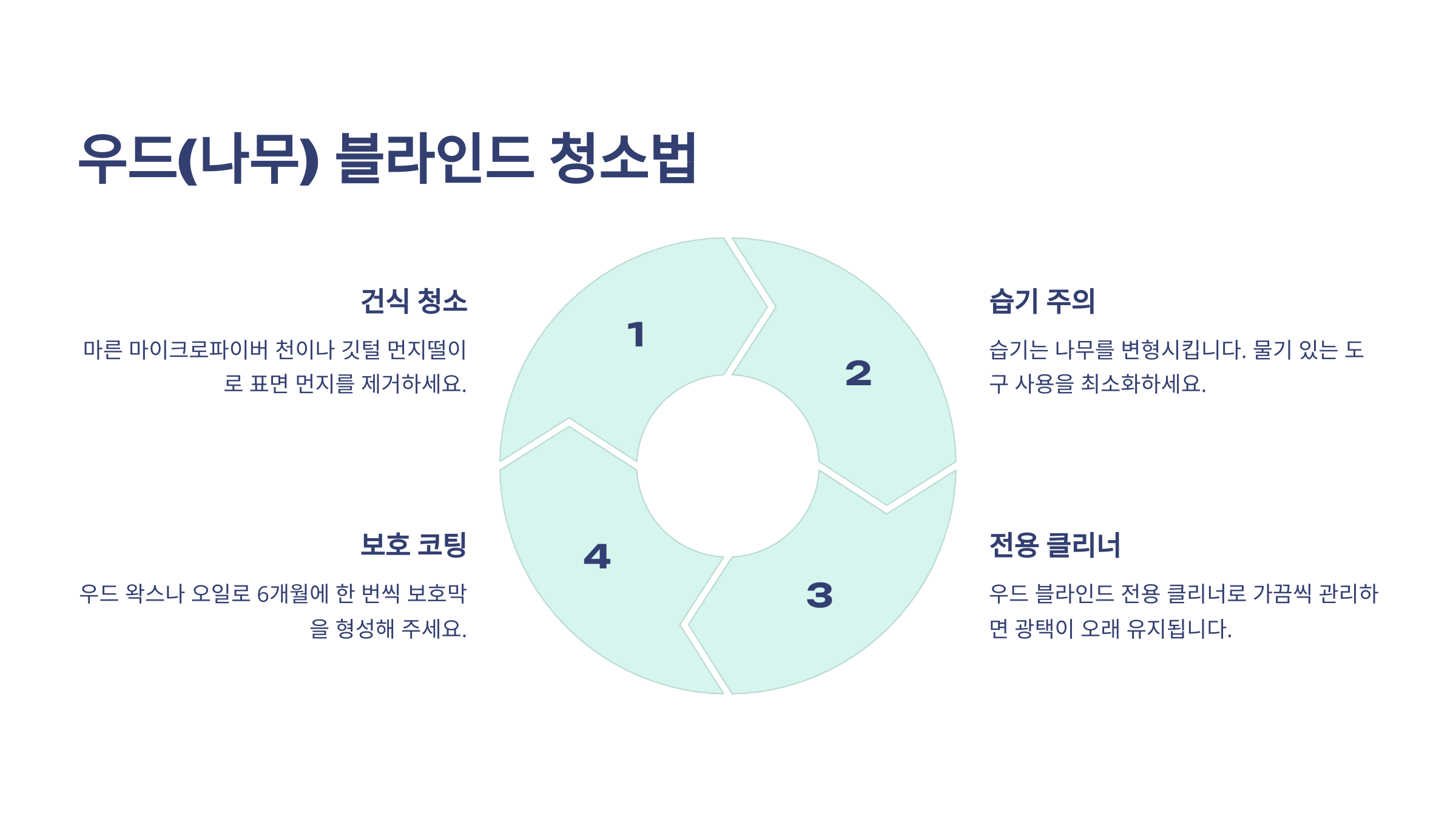 우드 블라인드는 고급스러운 분위기를 연출해 주지만, 습기와 먼지에 취약할 수 있어요. 특히 잘못된 청소 방법을 사용하면 나무가 변색되거나 휘어질 수도 있기 때문에 주의가 필요합니다. ⚠️