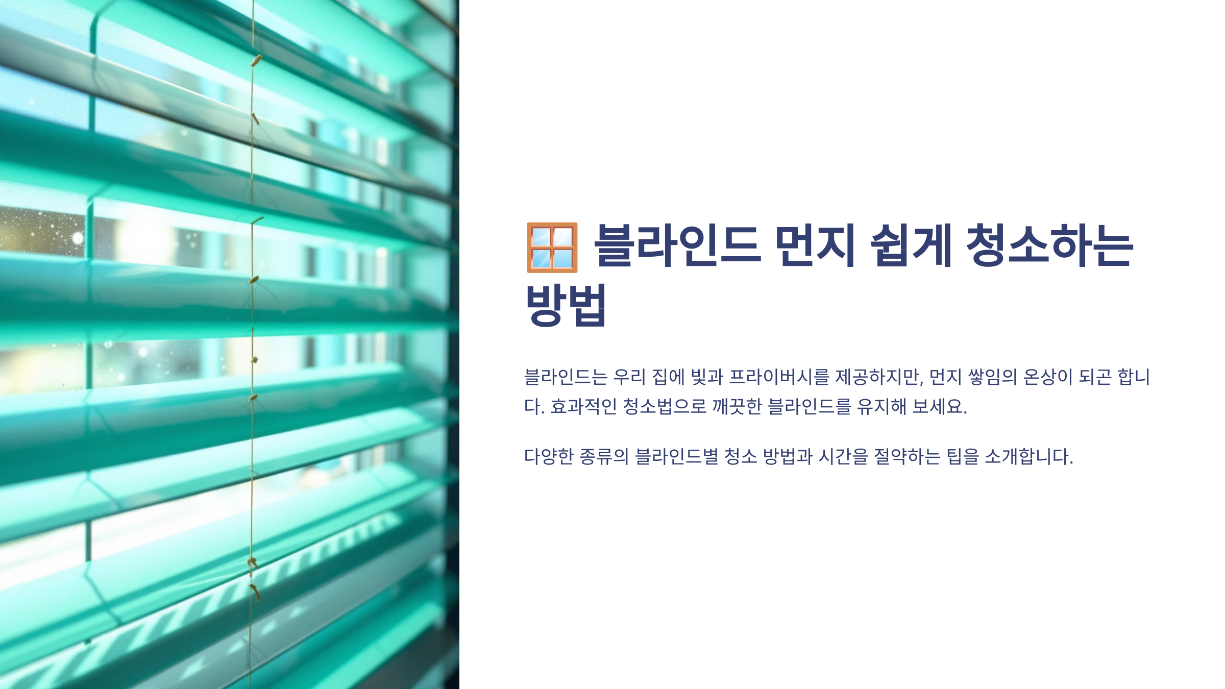 블라인드는 먼지가 쉽게 쌓이지만, 청소가 번거로운 곳 중 하나예요. 특히 방치하면 먼지가 뭉쳐 얼룩이 생길 수도 있기 때문에 주기적인 관리가 필요합니다. 🧹